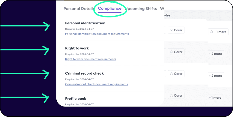 Our platform is designed for the care sector, offering a range of tools to tackle flexible-workforce challenges. These include tools that reduce compliance and safeguarding risks and simplify admin, giving your organisation more time and resources to deliver exceptional care.