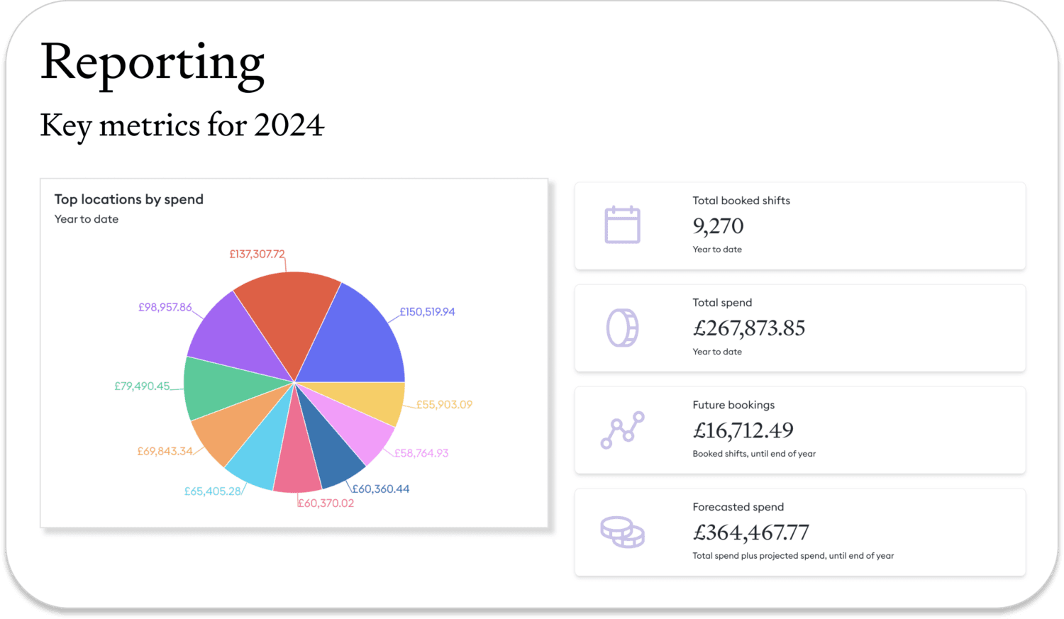 Tip! A tool like Florence, can easily surface aggregated temporary staffing across multiple locations. This data can then be used by central finance and operations teams to use to highlight problem areas (see example below). One way organisations can use this data to reduce spend by central teams, is to identify if which are locations with the highest agency spend, then investigate what the challenges are at a local level, and support the team to reduce this spend through measures such as perm hiring or culture changes.